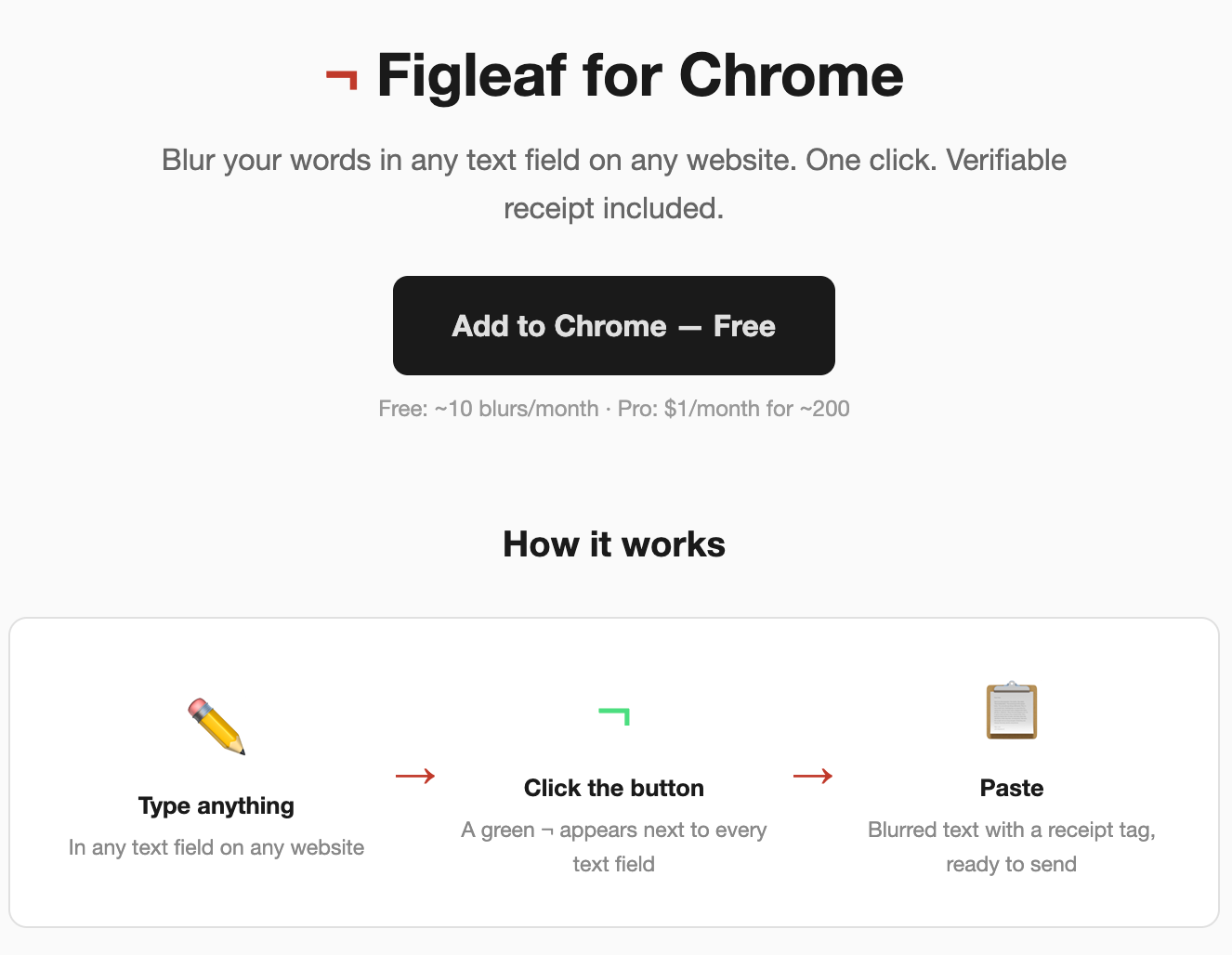 Basic version works at figleaf.pro. The fun part: $1/month gets you a Chrome extension for one-click transformation from any text box. There’s even a YOLO mode where you can post directly to X without seeing the output first - the receipt proves you never even read it before posting.